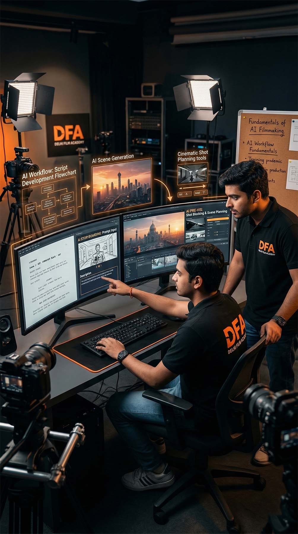 Are you ready to design large-scale cinematic environments, digital interiors, and architectural extensions using advanced generative systems? WAN AI enables filmmakers to build structured visual worlds with precision and lighting control. Within Delhi Film Academy’s AI Filmmaking module, students learn to integrate WAN AI into professional pre-production and post-production workflows.